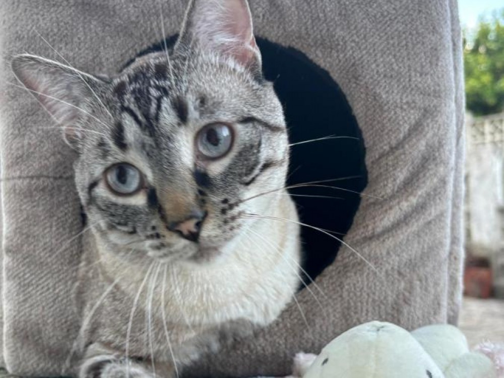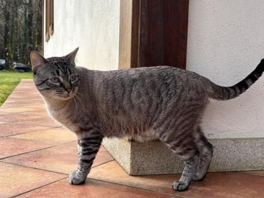 : Puede estar fuera de casa, atiende por el nombre, sabe estar con todo tipo de gente y se deja coger en brazos, es tranquilo y muy cariñoso, sabe tb estar con niños. Se deja tocar sin problema.