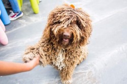 Adiestramiento: Medio-AltoComentarios: 56cm alto (con cabeza), 75cm largo Perra entrenada con habilidades de perro de terapia. Posiciones (sentado, tumbado, de pie) Target (suelo, pared, objetos) toca con el hocico o la pata Propedéutica Habilidades caninas: reverencia, dar las patas, giros, muerto, hhead down, pasar entre las piernas, pingüino- quedarse a dos patas, encender la luz, hacer pases con la pelota