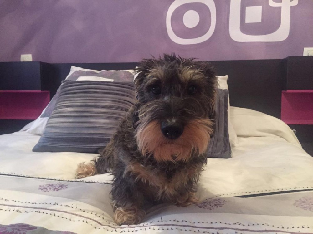 : Sabe sentar, tumbarse, hacerse el muerto, dar la pata, ponerse de pie, saltar; le encanta aprender cosas nuevas! Le gusta posar para fotografías.....