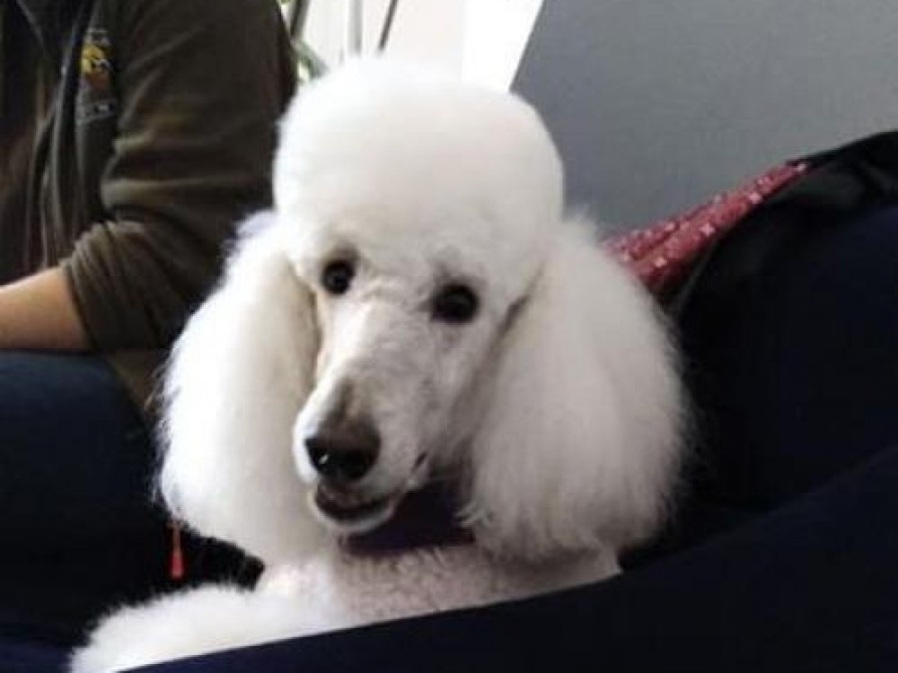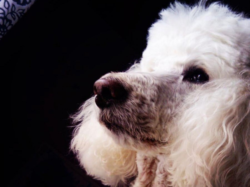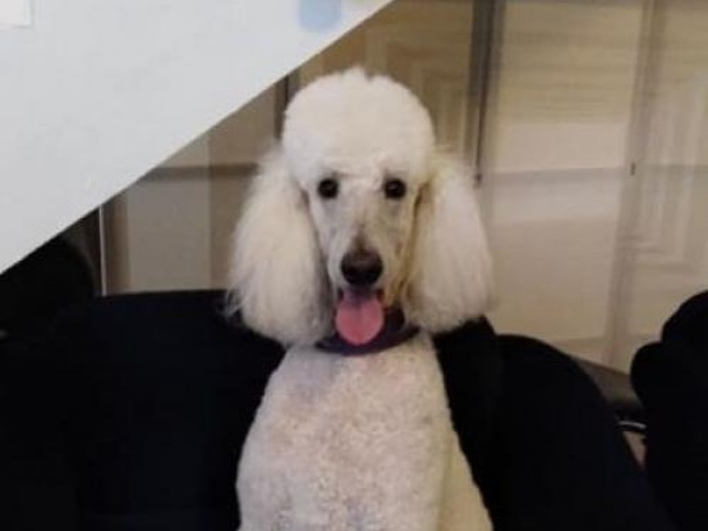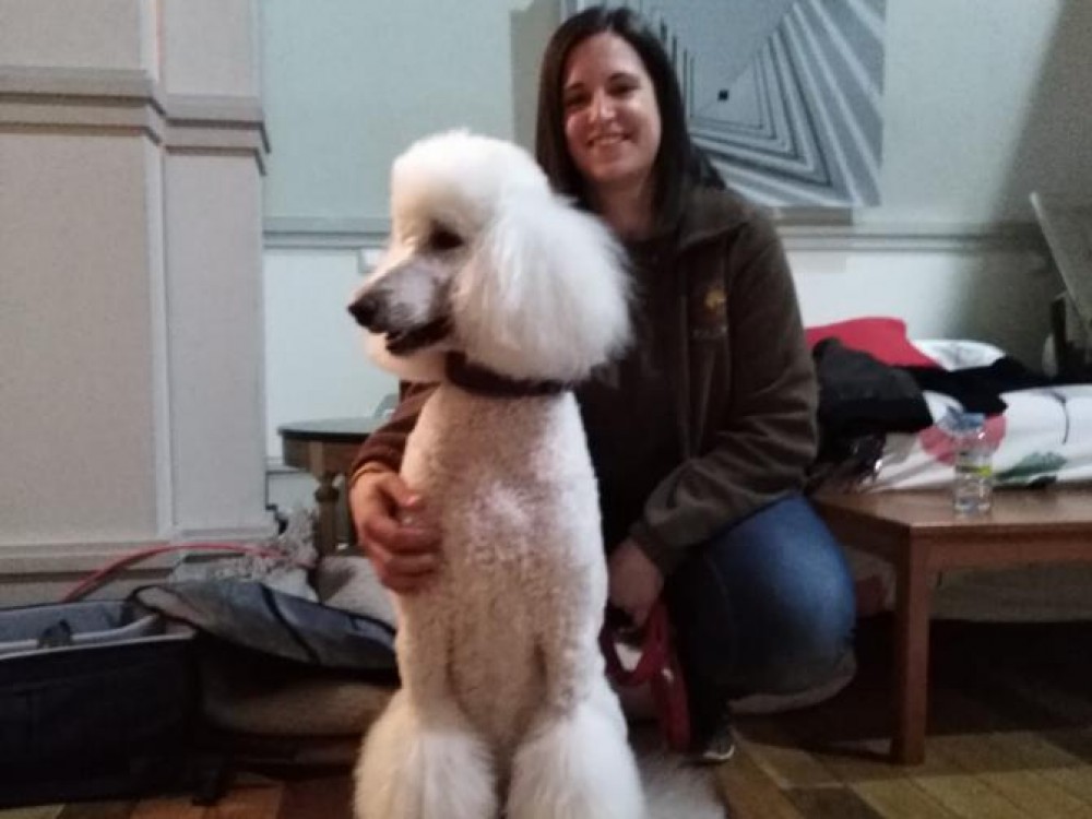 : Comentarios: Caniche gigante blanco de 25kg de peso con experiencia en rodajes, eventos, pasarelas de moda...
